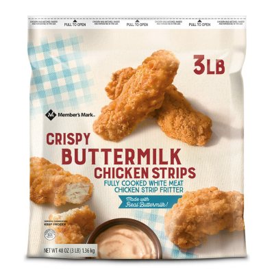 Pc buttermilk chicken strips. Boneless Skinless Chicken Breast Strips Wheat Flour Vegetable Oil Canola Oil Corn Oil Soybean Oil Hydrogenated Soybean Oil Water Salt Leavening Baking Soda Sodium Acid Pyrophosphate Potato Starch Spices Rice Starch Sugar Rice Flour Corn Starch Garlic Powder Yellow Corn Flour Onion Powder Buttermilk Citric Acid Natural Flavor Maltodextrin Xanthan. Divide the chicken pieces into 2- 1-gallon ziplock bags. Press out as much air as possible and seal bags.
